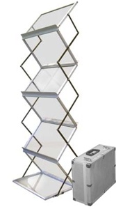 Брошюрница с 4 акриловыми лотками для брошюр - элегантная и стильная, собирается и разбирается одним движением руки. Можно сложить и упаковать в сумку, не вытаскивая брошюры из лотков.