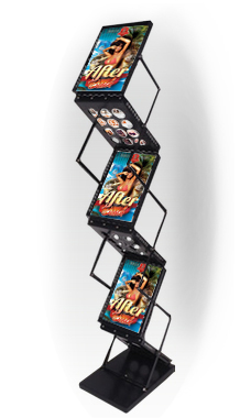 Буклетница - вид мобильных стендов с наибольшим разнообразием форм, конструкций и размеров. Это не удивительно, потому что стойки для буклетов применяются и на выставках, и в магазинах, и в офисах, и при проведении промо-акций...