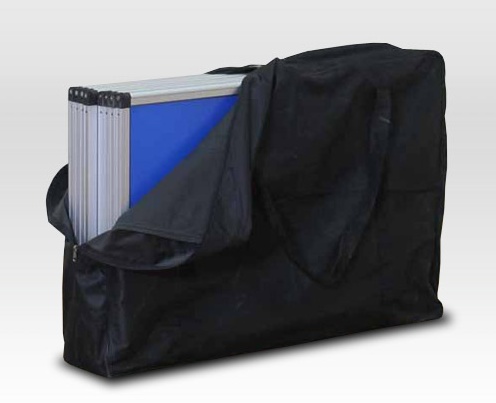 «Fold up» стенд в сложенном виде. Стенды транспортируются в сумке, фотопанно при этом находятся внутри рам.