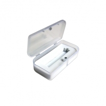 Подарочная коробочка под флешку, лазерную указку или фонарик выполнена из матового белого пластика с амортизирующим слоем.