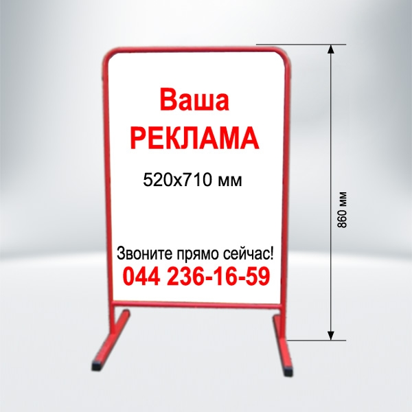 штендер — выносная конструкция с информацией на двух рекламных поверхностях. Каркас изготавливают из металла, поскольку штендер устанавливается на открытом воздухе, а металл, в отличие от дерева или пластика более прочен и устойчив к воздействиям внешней среды.Металлический каркас придает устойчивость и жесткость даной конструкции.